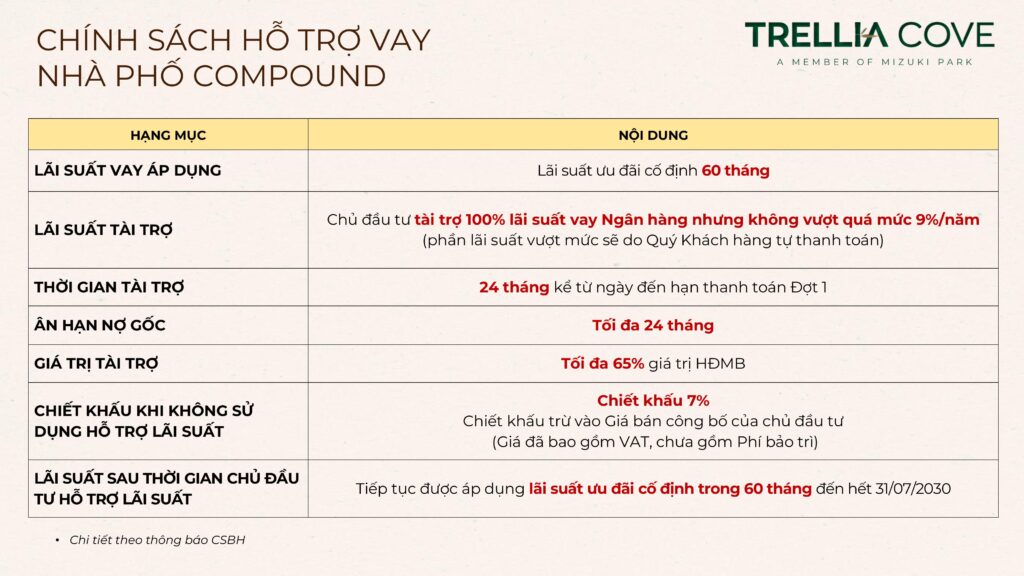 - Không nhận hỗ trợ vay từ chủ đầu tư được ưu đãi thêm 7%.